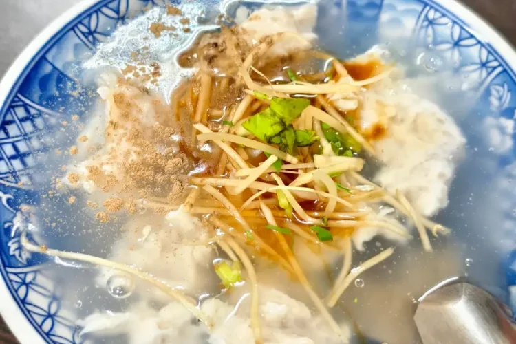 另外還有一個老饕的心頭好——「虱目魚皮湯」。阿鳳的魚皮是帶著薄薄肉層的那種,吃起來有魚皮的軟 Q,也有魚肉的細緻。湯底加入大量的薑絲與芹菜末,喝上一口,整個人都暖了起來,那種清鮮的滋味,真的是重口味滷肉飯的最佳拍檔。