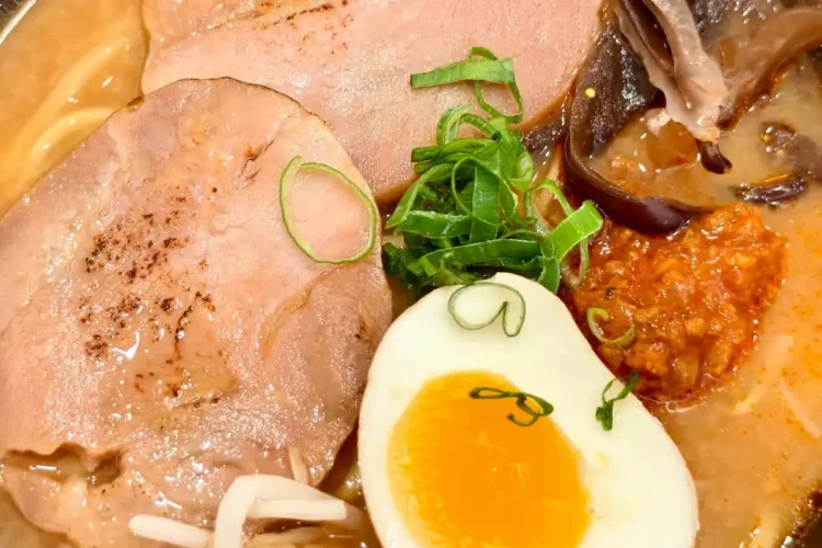 相較於味噌的濃烈,這碗九州豚骨拉麵對我來說則溫潤許多。乳白色的湯頭喝起來帶有淡淡的豬骨香氣,不會過於油膩,鹹度調整得剛好適合大眾口味。我特別喜歡它的細捲麵充分吸附湯汁的口感,每一口都能吃到湯頭的甜味。配菜中的糖心蛋表現穩定,軟嫩的蛋白與膏狀的蛋黃,是我心中拉麵碗裡最完美的配角。