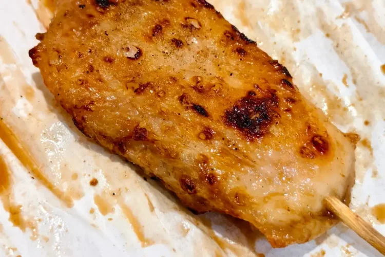 這裡的甜不辣烤得外皮微酥,咬下去卻有著驚人的 Q 彈感。醬汁刷得剛剛好,不會掩蓋魚漿本身的甜味。