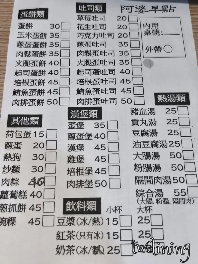 - 店名: 阿婆早點